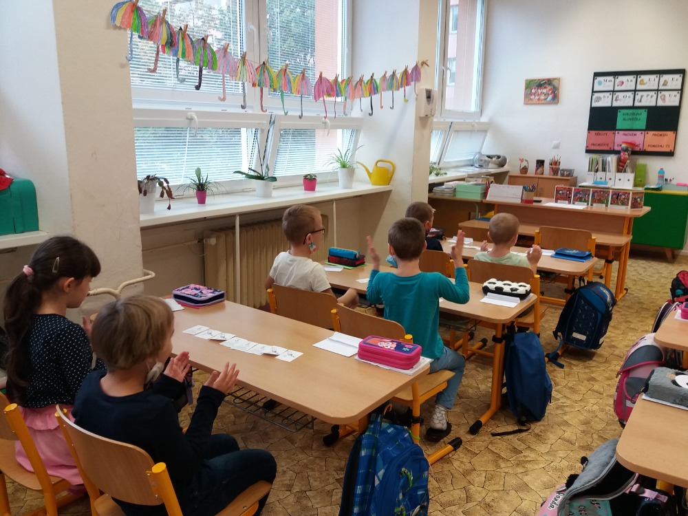 V říjnu v prvních třídách proběhly projektové dny s tematikou známých pohádek, do kterých byly zařazovány prvky metody Stages. 1.A si vyzkoušela práci na projektovém dni s pohádkou Krtek a podzim a 1.B s pohádkou Jak si pejsek s kočičkou dělali k svátku dort. V průběhu celého dne děti plnily různorodé úkoly, věnovaly se rozmanitým aktivitám se zaměřením na hudbu, pohyb, kresbu a logiku. Děti se s velkým nadšením a nasazením zapojily do všech činností a my vyučující jsme byly překvapeny, jak jsou děti šikovné a co všechno dokáží vymyslet, s jakými novými návrhy a nápady dokáží přijít. Inovace jsou podstatou metody Stages.