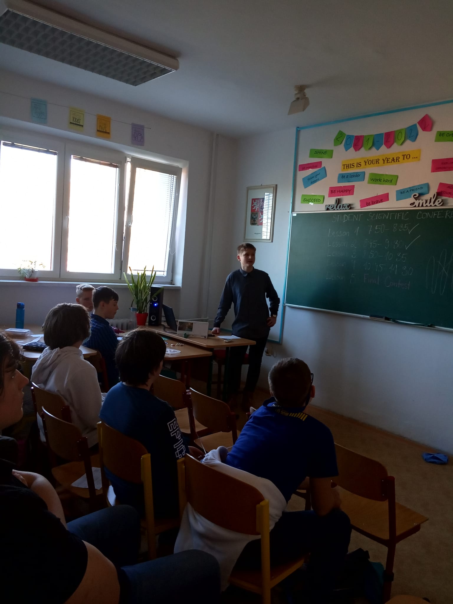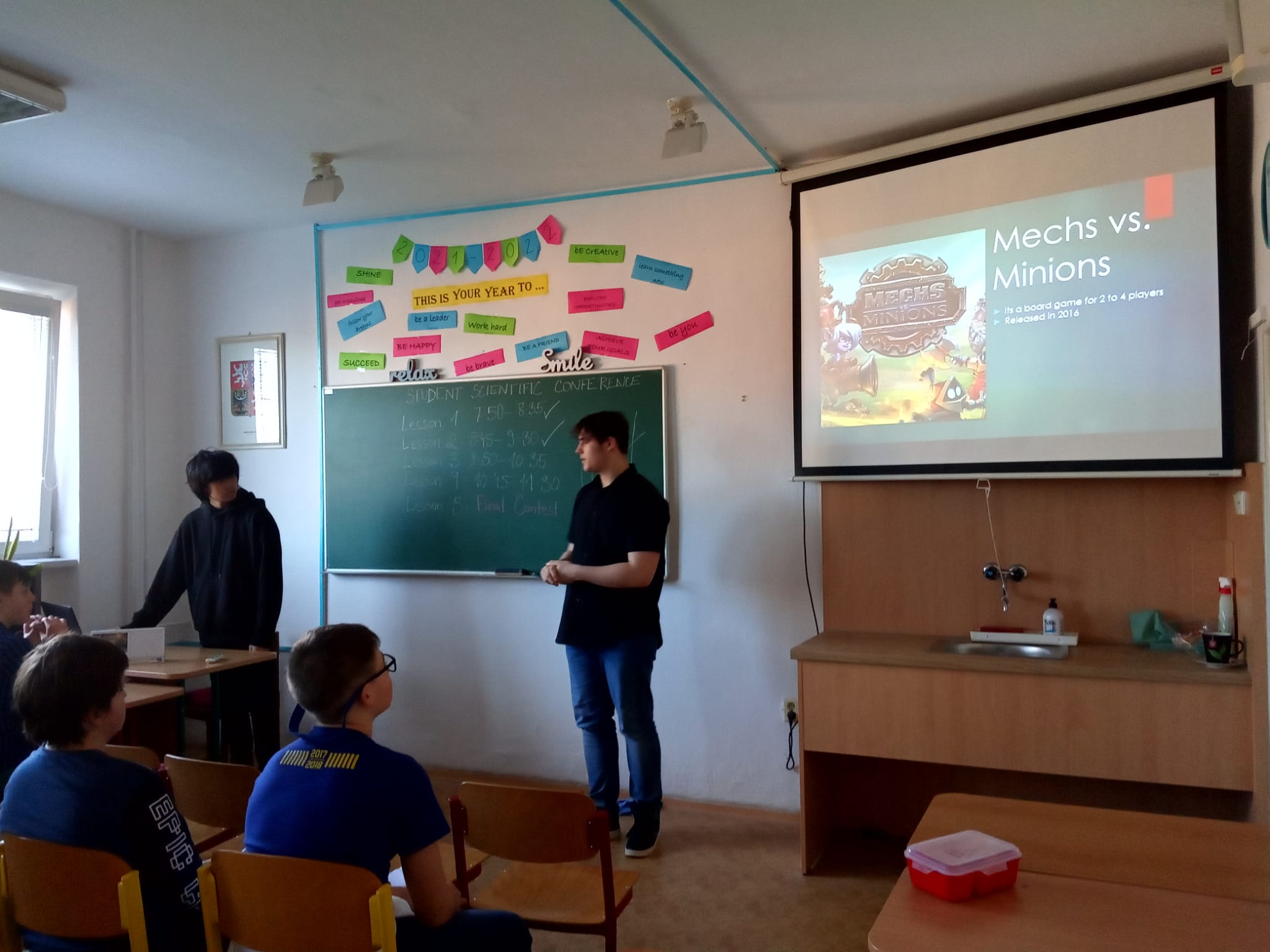 A v neposlední řadě, ve čtvrtek 24. 2. 2022, zamířili tři odvážní žáci, Mirek S., Tony B. (8.C) a Ondra Š. (9.A) na Wichterlovo gymnázium, aby reprezentovali naši školu na Studentské vědecké konferenci v anglickém jazyce. Se svými prezentacemi se snažili zaujmout porotu a předvést co nejlepší výkon. Ani náročná příprava bohužel nestačila na umístění, nicméně všichni chlapci si odnesli cennou zkušenost a Ondra taky cenu poroty za zvolené téma – Rusko-ukrajinský konflikt – které snad ani nemohlo být aktuálnější.