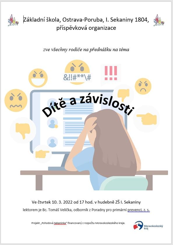 Náš projekt pokračuje i ve druhém pololetí letošního školního roku. Na aktivity z I. pololetí navážeme přednáškou pro rodiče na téma Dítě a závislosti ve čtvrtek 10. 3. 2022.