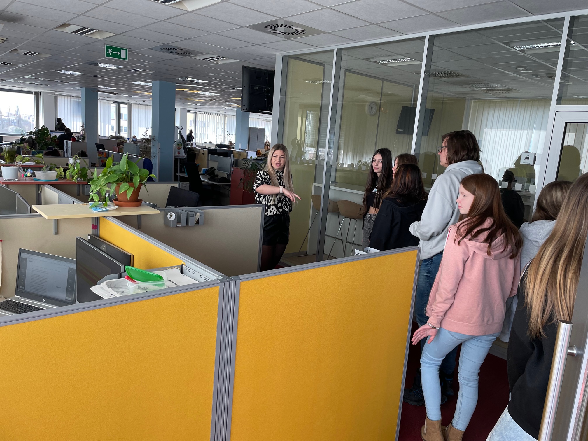 V úterý 28. 3. 2023 jsme podnikli další exkurzi k volbě povolání a tentokrát naše kroky mířily do České spořitelny. Žáci a žákyně z 8. a 9. ročníku se zájmem o obor financí a bankovnictví se zde měli možnost seznámit s fungováním této pobočky, kde sídlí klientské centrum, callcentrum a správa vymáhání pohledávek. Nahlédli jsme zde po pokličku pracovních pozic, jako jsou univerzální bankéř, pracovník klientského centra, bankéř-specialista pro úvěry, bankéř-specialista pro pojištění nebo třeba na pozice bankéřů z týmu investic a podnikatelských záměrů. Ve druhé části naší exkurze jsme si prohlédli prostory klientského centra a callcentra včetně zázemí pro zaměstnance s masážním křeslem, pingpongovým stolem nebo stolním fotbalem. Také pro nás byly připraveny soutěžní kvízy, kde žáci vyhráli drobné ceny. Exkurze se mohla uskutečnit díky projektu Moravskoslezského kraje na podporu odborného, kariérového a polytechnického vzdělávání v Moravskoslezském kraji.