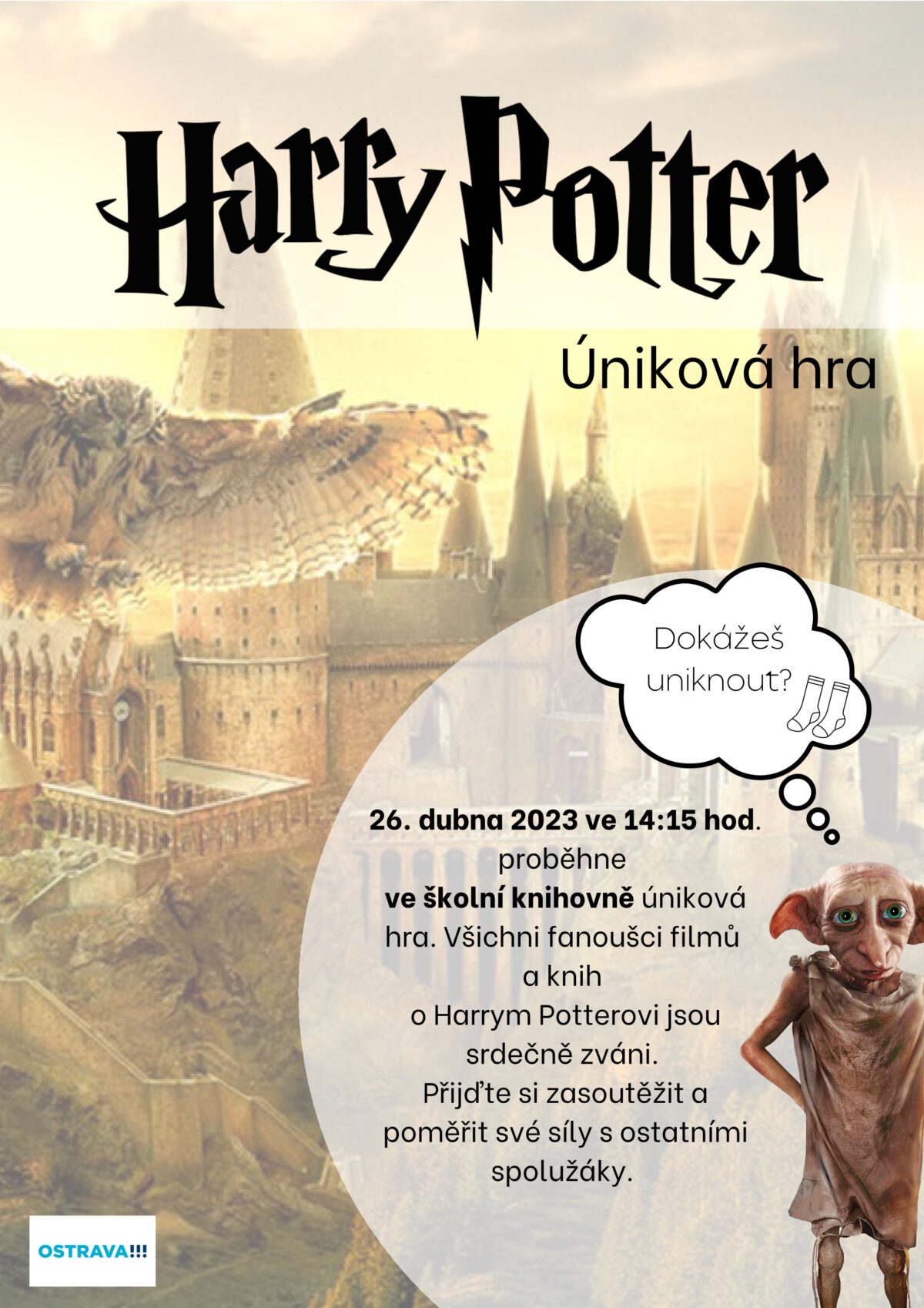 Je to únikovka pro všechny, kteří mají rádi sérii knih J. K. Rowlingové o Harry Potterovi a filmy natočené podle této předlohy. Všechny fanoušky zveme na zajímavé soutěžní odpoledne ve středu 26.4.2023 od 14:15 hod. v naší knihovně. Mohou soutěžit žáci 1. i 2. stupně (doporučujeme žákům 3. – 9. třídy) jako jednotlivci nebo dvojčlenné týmy.