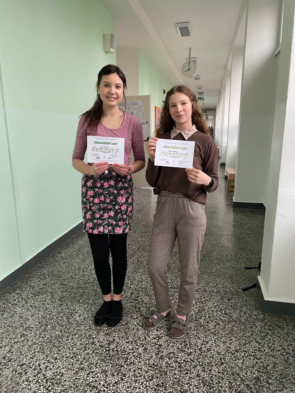 V pondělí 3. dubna 2023 se proběhlo okresní kolo Olympiády v českém jazyce. Naši školu reprezentovaly Eva Filipcová a Tamara Elizabeta Adamová z 9. ročníku, které dosáhly vynikajících výsledků a v konkurenci dalších 85 účastníků ze základních škol a gymnázií vybojovaly krásné 14. a 15. místo! Oběma žákyním děkujeme za skvělou reprezentaci školy a gratulujeme k pěknému umístění.