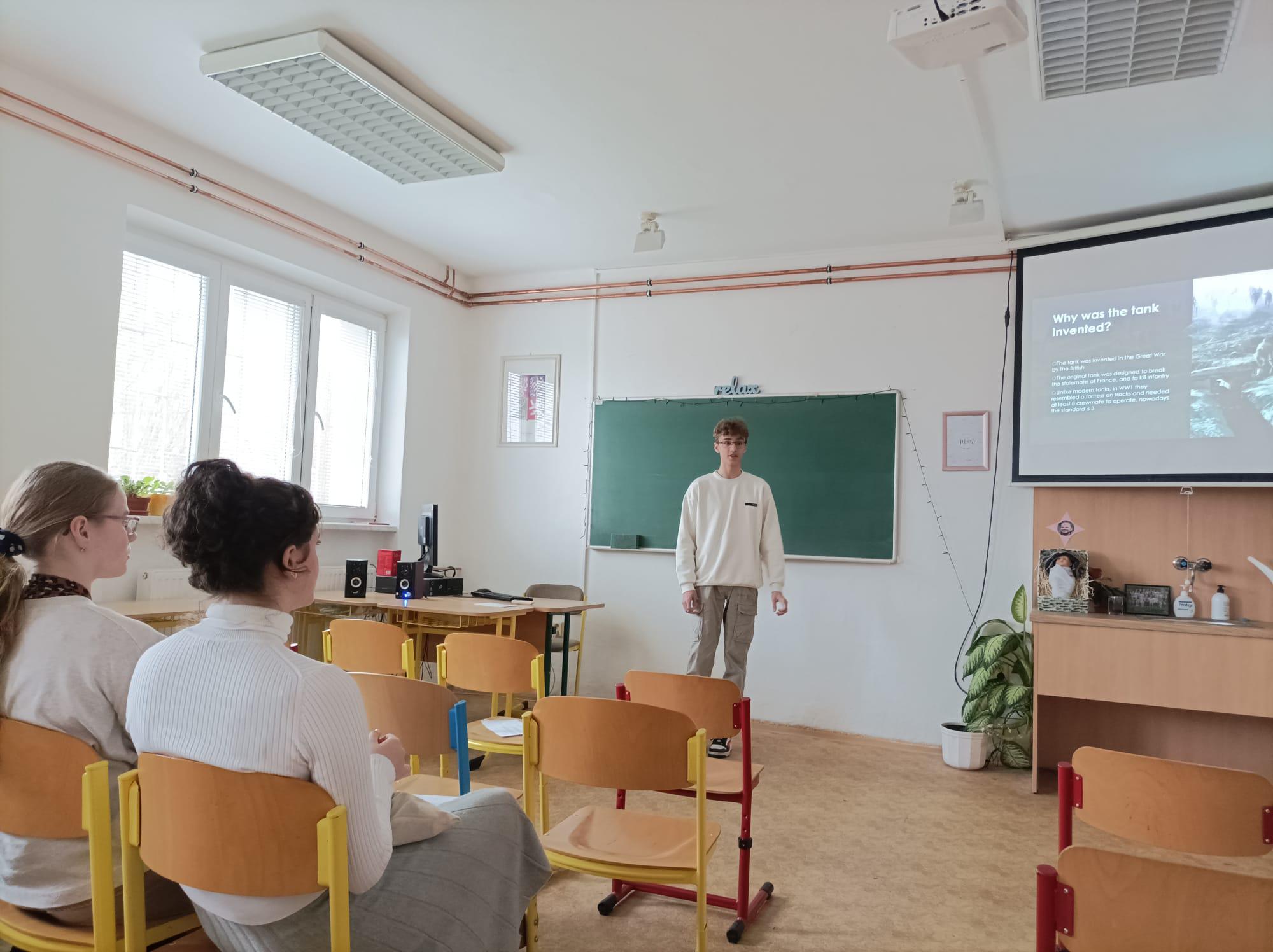 Jakub C. se rozhodl pro téma Tanks in battle: from WWI to the present day a prokázal své hluboké znalosti o historii a tancích.