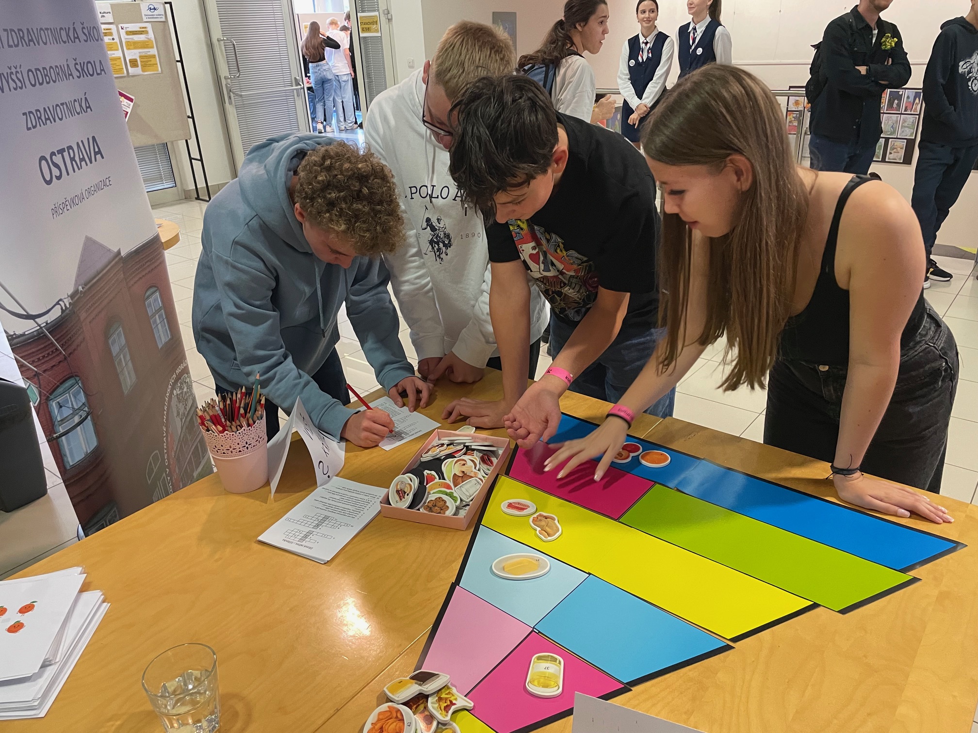 A konečně v pátek 18. 10. zavítal tým osmi žáků na vítkovickou SOŠ AHOL, na které se konala mezi žáky oblíbená soutěž Ahol’s Amazing Race s názvem Exploring the World. Na žáky zde čekalo mnoho zajímavých úkolů napříč mnoha obory. Nesměl chybět test v anglickém jazyce včetně poslechu a čtení s porozuměním, ale také úkoly zaměřené na finanční gramotnost, IT a média, zeměpis, dějepis a další. V konkurenci 14 škol se naše družstvo umístilo na krásném 4. místě a my všem velmi děkujeme za skvělou reprezentaci naší školy!
