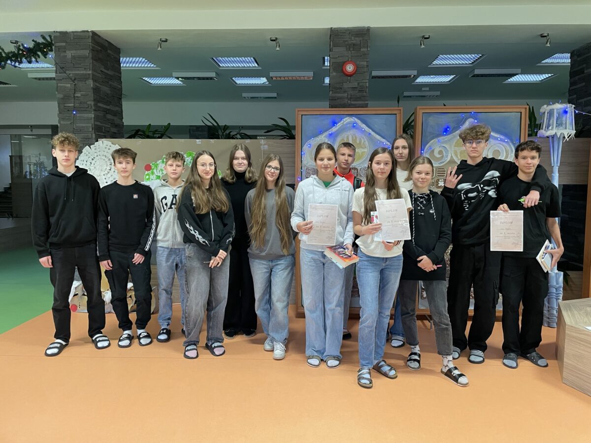 V úterý 4. prosince se na naší škole uskutečnilo školní kolo olympiády z českého jazyka. Soutěže se zúčastnilo 13 žáků 8. a 9. ročníku. Soutěž byla rozdělena do dvou částí: mluvnické části, ve které žáci plnili nejrůznější úkoly z jazykové oblasti, a do slohové části, v níž měli napsat volnou slohovou práci na zadané téma. Studenti prokázali hluboké znalosti a dovednosti v obou oblastech a předvedli vynikající výkony. Na 1. místě se umístil Honza z 9. C, na 2. místě se umístila Klára z 8. C a na 3. místě se umístila Silvie z 9. B, na 4. místě se umístil Matěj z 9. A. Všem účastníkům srdečně gratulujeme a Honzovi a Kláře, kteří budou školu reprezentovat v okresním kole, přejeme hodně zdaru!