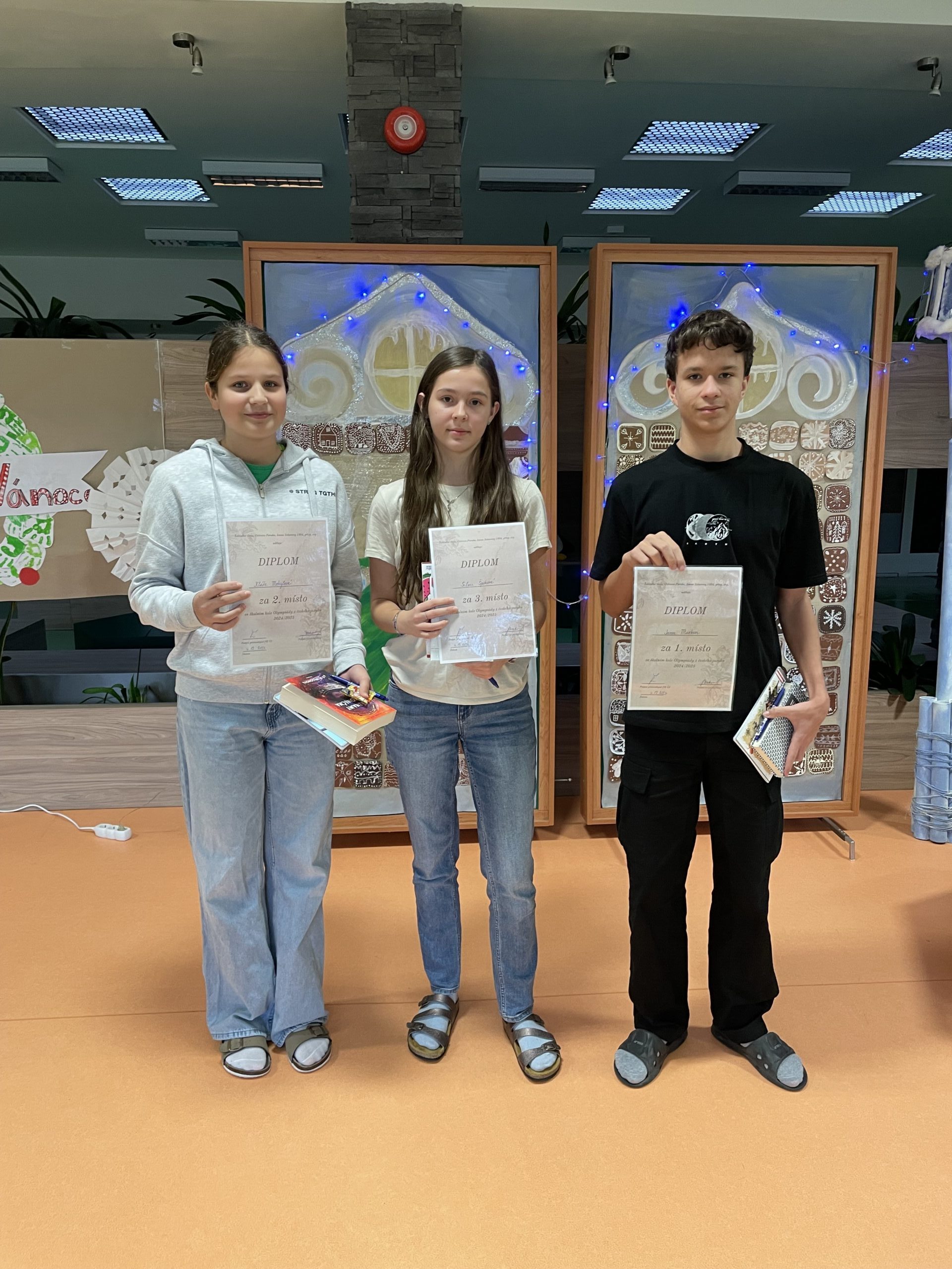 V úterý 4. prosince se na naší škole uskutečnilo školní kolo olympiády z českého jazyka. Soutěže se zúčastnilo 13 žáků 8. a 9. ročníku. Soutěž byla rozdělena do dvou částí: mluvnické části, ve které žáci plnili nejrůznější úkoly z jazykové oblasti, a do slohové části, v níž měli napsat volnou slohovou práci na zadané téma. Studenti prokázali hluboké znalosti a dovednosti v obou oblastech a předvedli vynikající výkony. Na 1. místě se umístil Honza z 9. C, na 2. místě se umístila Klára z 8. C a na 3. místě se umístila Silvie z 9. B, na 4. místě se umístil Matěj z 9. A. Všem účastníkům srdečně gratulujeme a Honzovi a Kláře, kteří budou školu reprezentovat v okresním kole, přejeme hodně zdaru!