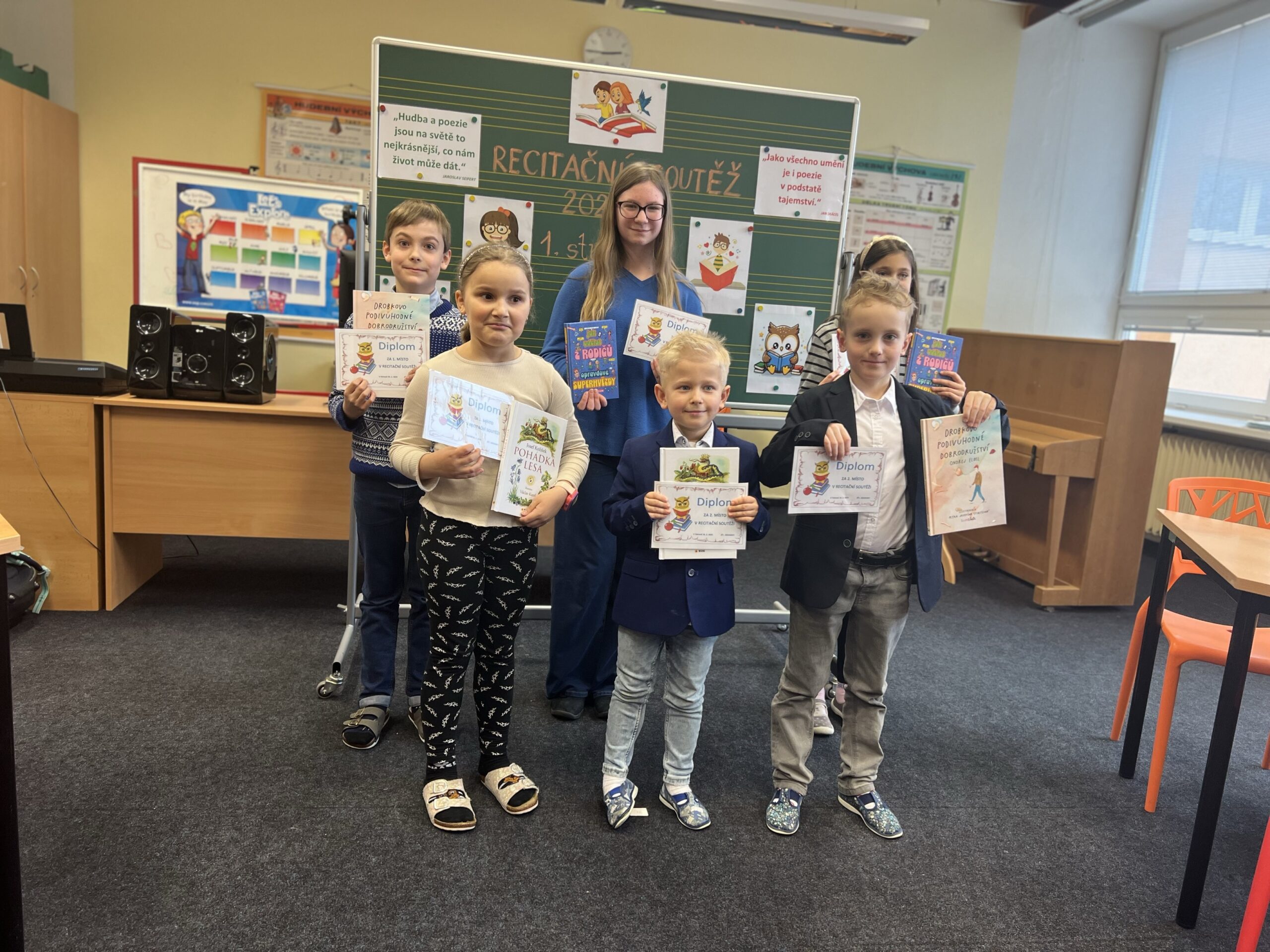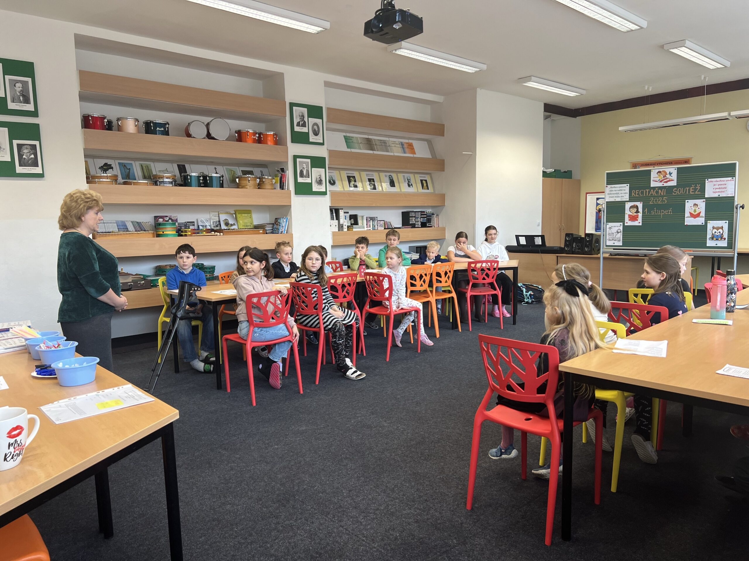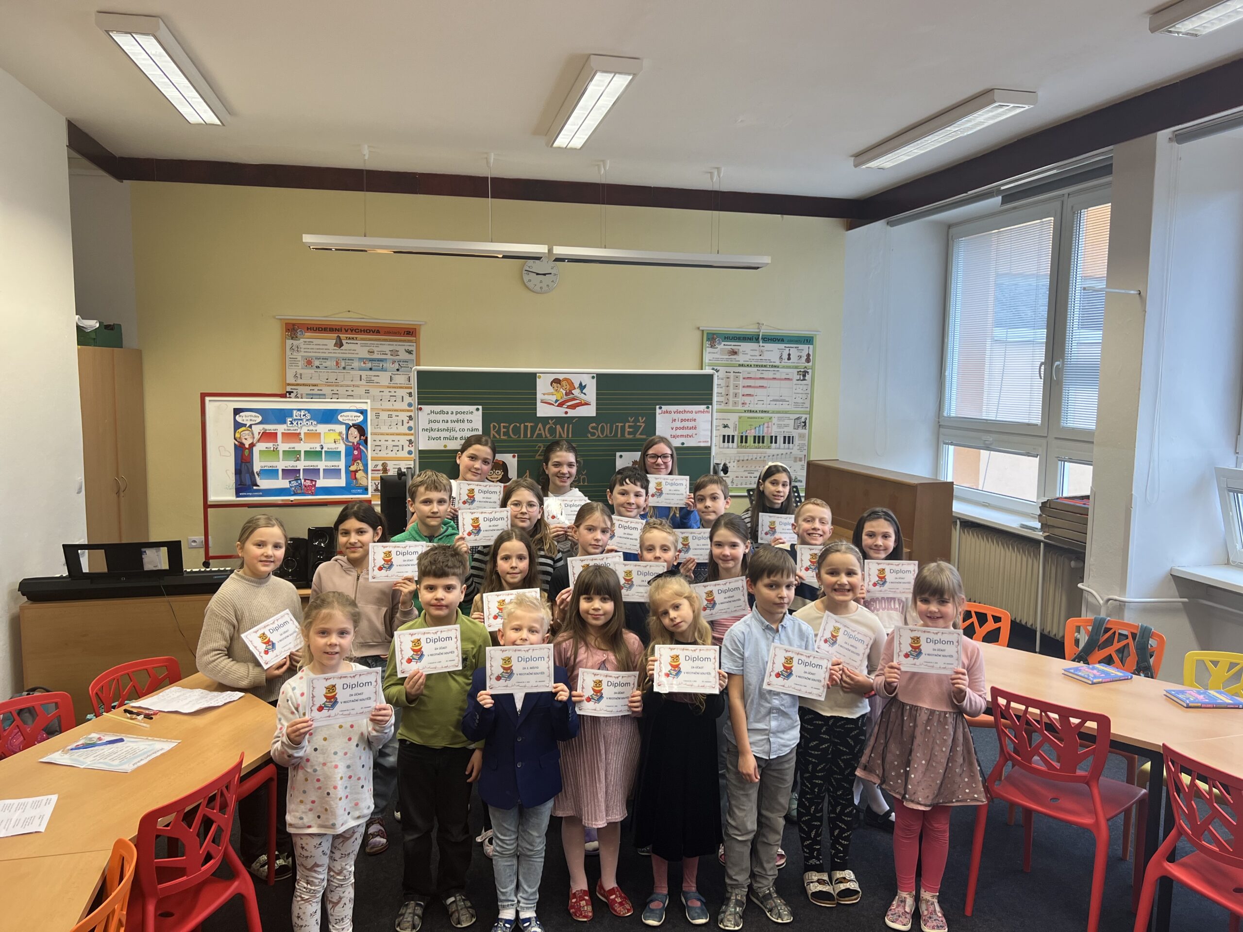 Ve středu 26. 2. 2025 proběhlo v hudebně školy školní kolo v recitaci. Sešlo se 24 vybraných dětských recitátorů z 1. stupně. Hudebnu rozezvučely básně našich i zahraničních autorů. Šest nejlepších postupuje 7. 3. 2025 do obvodního kola, které se bude konat v DDM na ul. Marie Majerové. A kdo byl úspěšný? V 0. kategorii zvítězili Nina z 1. A a Dillon z 1. D, v I. kategorii úspěšně postoupili Adam z 2. C a Eduard z 3. A a ve II. kategorii postoupila Nela a Isabela z 5. A. Všichni byli oceněni diplomy a drobnými cenami. Děkujeme všem zúčastněným recitátorům a postupujícím přejeme mnoho štěstí v další reprezentaci školy!