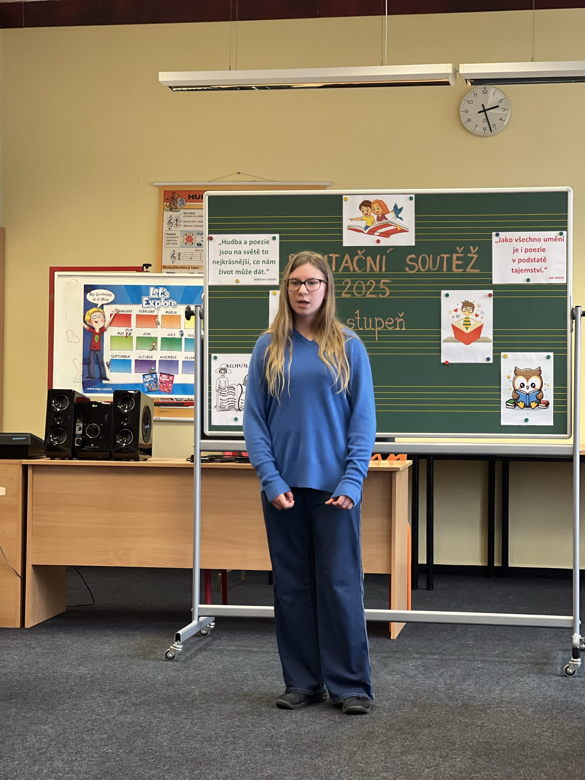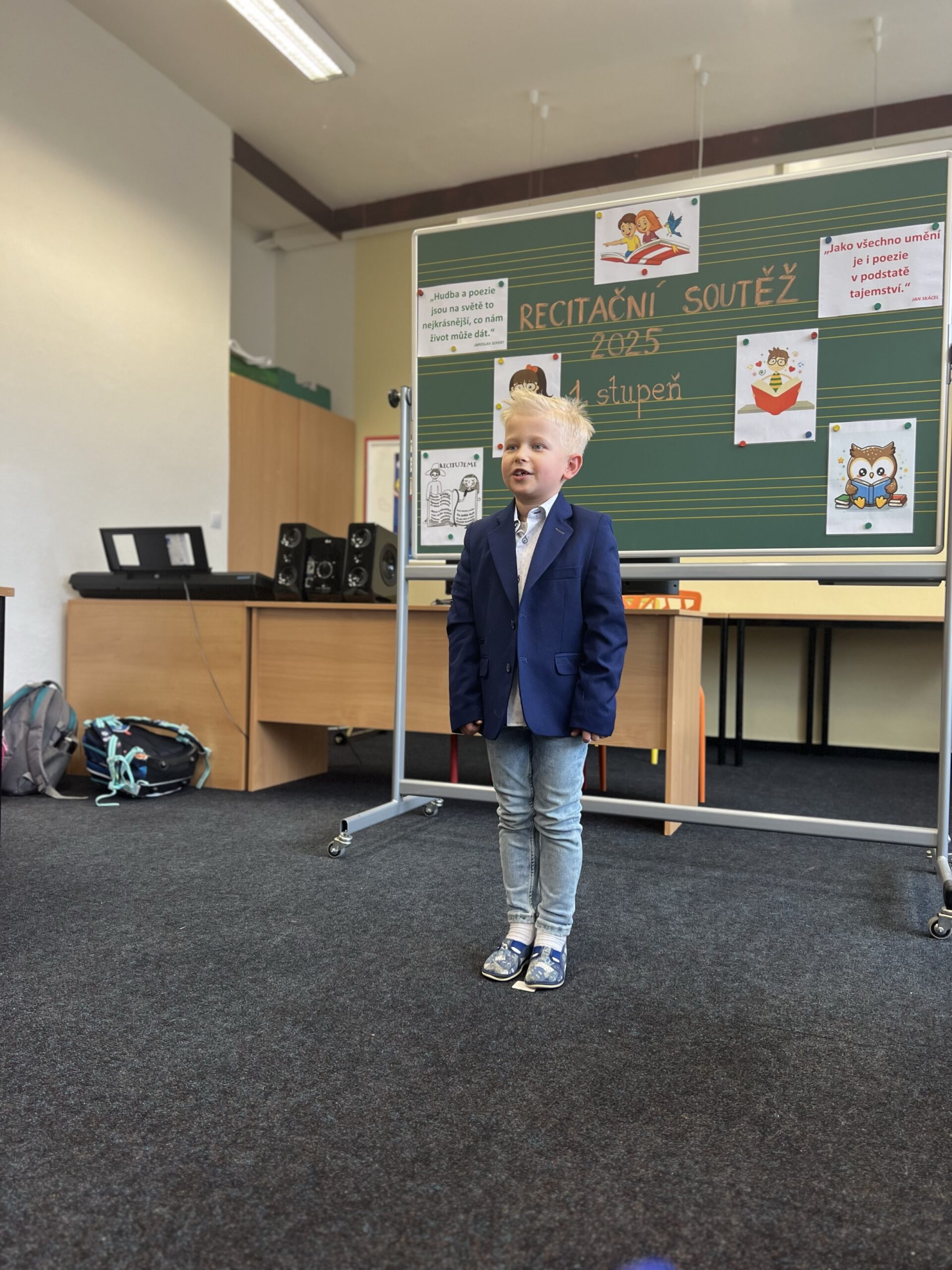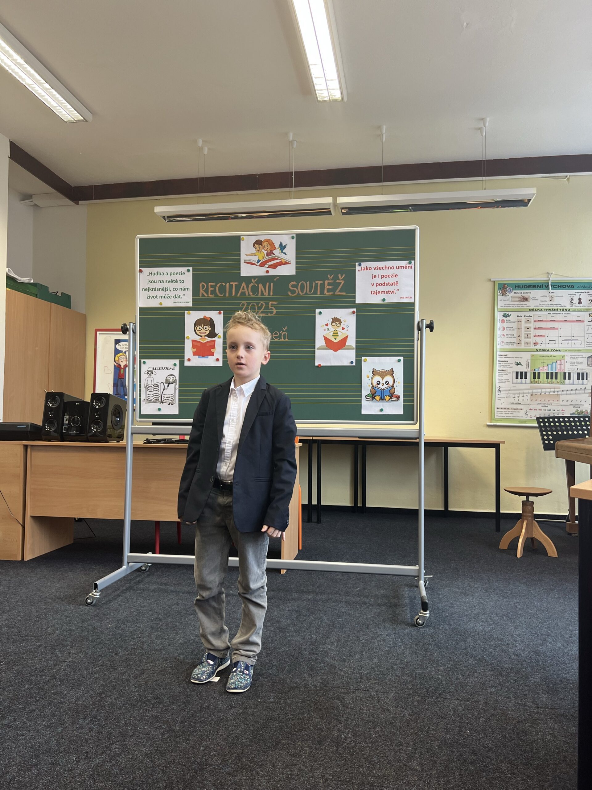 Ve středu 26. 2. 2025 proběhlo v hudebně školy školní kolo v recitaci. Sešlo se 24 vybraných dětských recitátorů z 1. stupně. Hudebnu rozezvučely básně našich i zahraničních autorů. Šest nejlepších postupuje 7. 3. 2025 do obvodního kola, které se bude konat v DDM na ul. Marie Majerové. A kdo byl úspěšný? V 0. kategorii zvítězili Nina z 1. A a Dillon z 1. D, v I. kategorii úspěšně postoupili Adam z 2. C a Eduard z 3. A a ve II. kategorii postoupila Nela a Isabela z 5. A. Všichni byli oceněni diplomy a drobnými cenami. Děkujeme všem zúčastněným recitátorům a postupujícím přejeme mnoho štěstí v další reprezentaci školy!